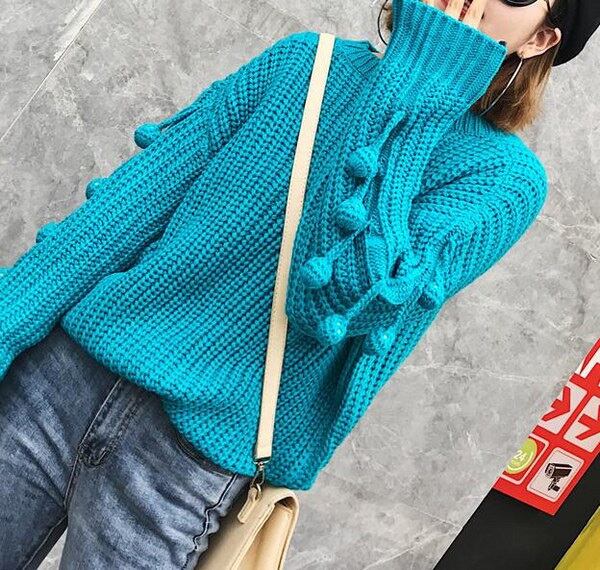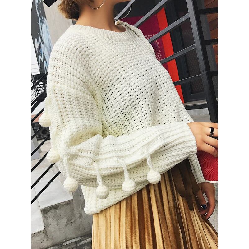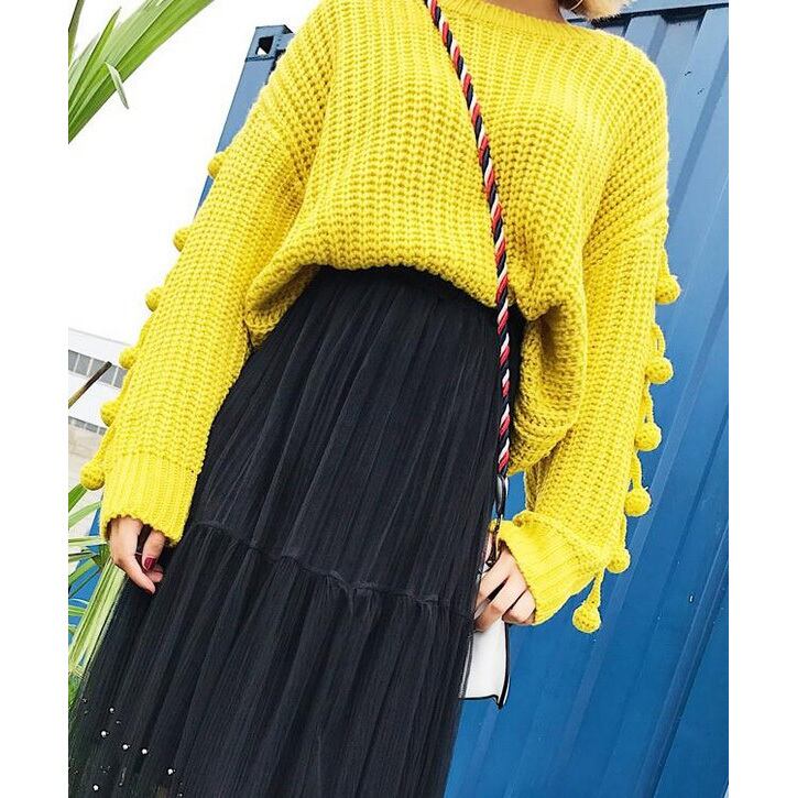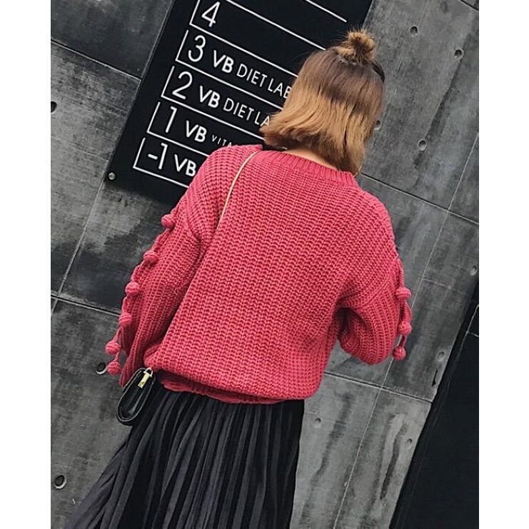 ★揺れるポンポン付スリーブ♪ガーリーチャンキーニット全4色★
