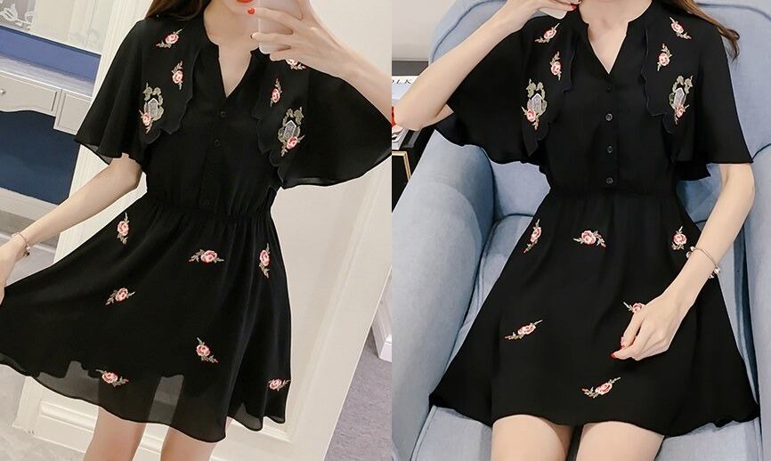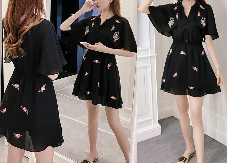 薔薇柄★ケープ風★フロントボタン★ミニスカート★ワンピース♪