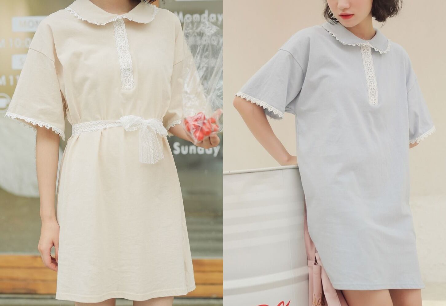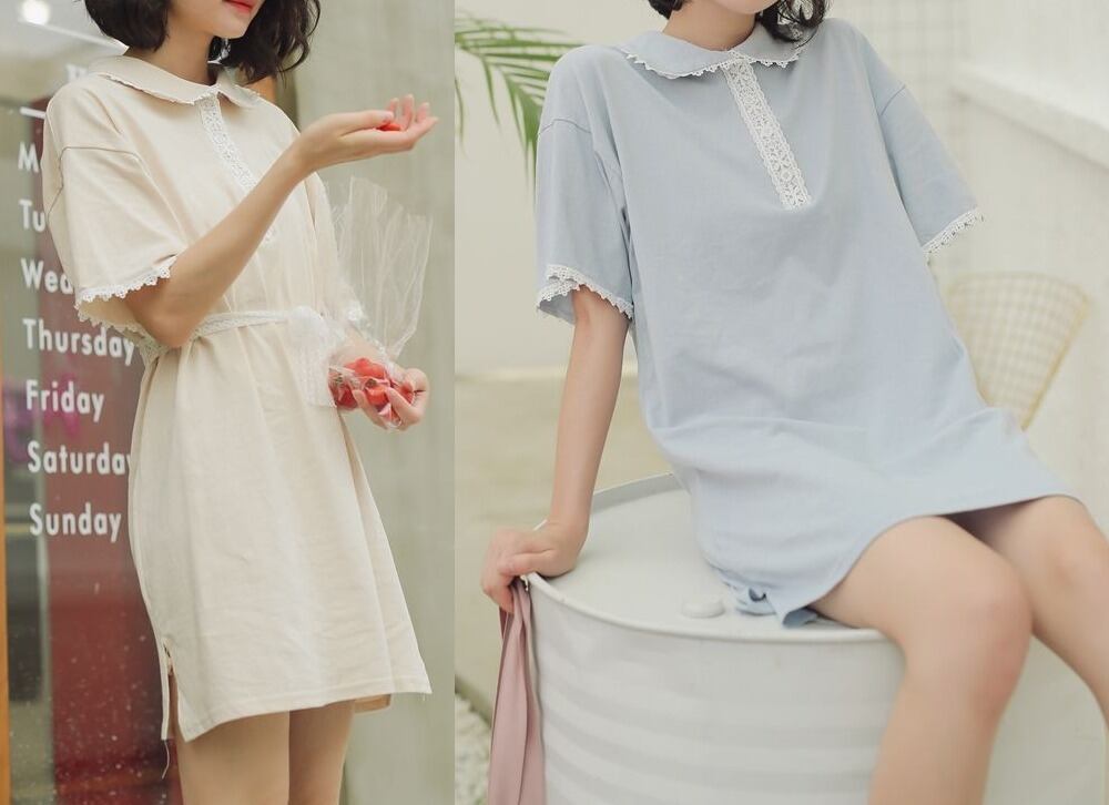 まる襟★レース縁取★2WAY・ウエストリボン★半袖★ワンピース♪