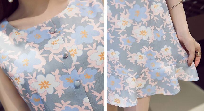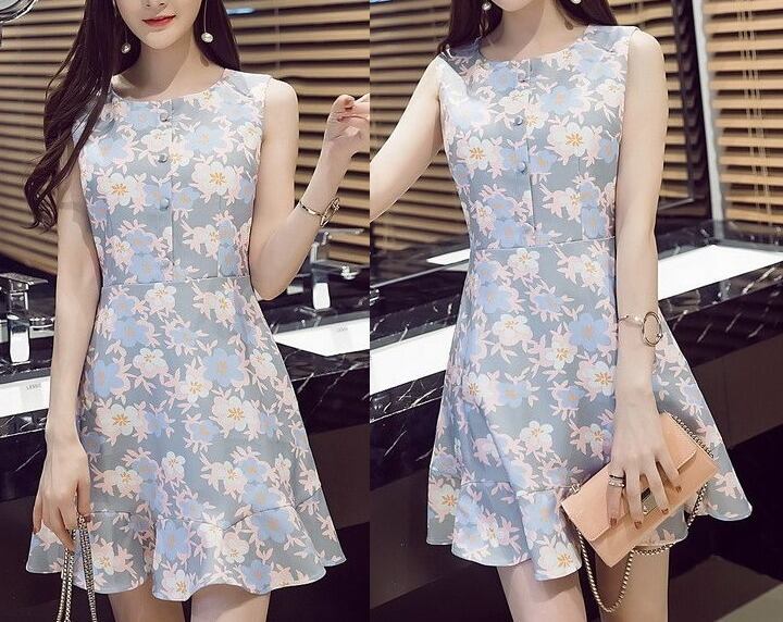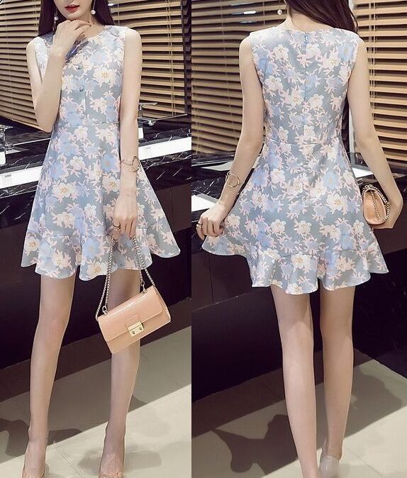 花柄★ラウンドネック★ノースリーブ★裾フリル★ワンピース♪