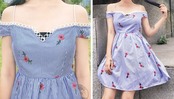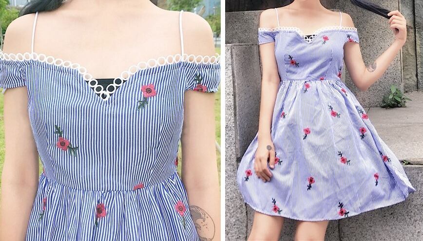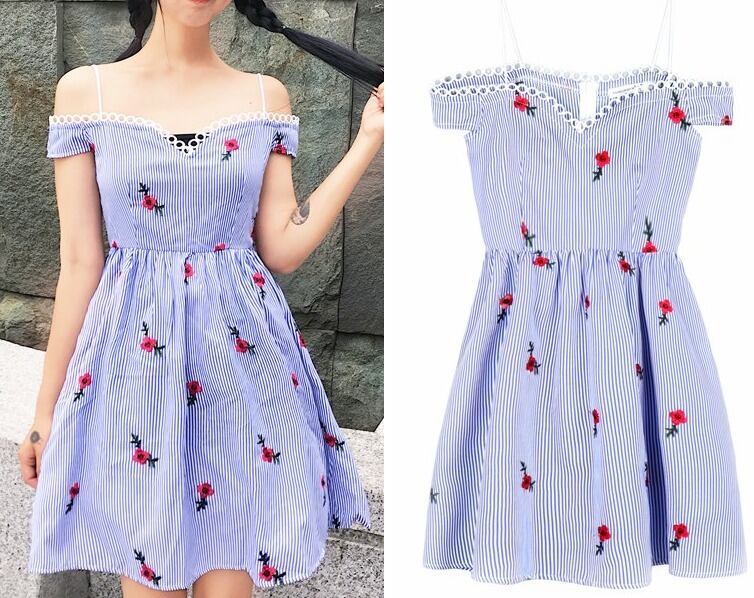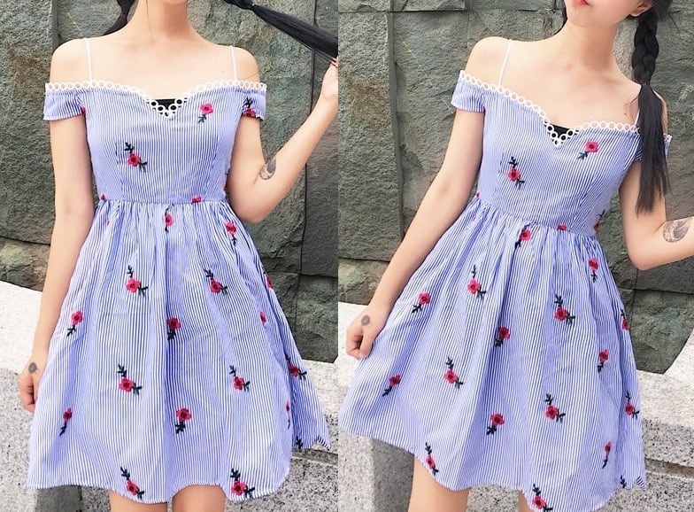 小花柄★肩紐ストラップ★胸元レース風・縁取り★ワンピース♪