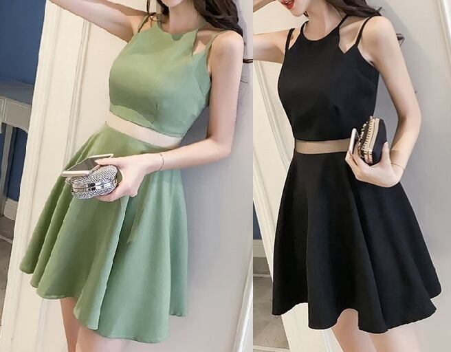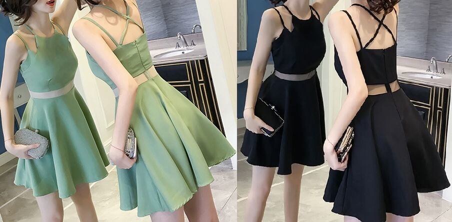 肩紐ストラップ★バッククロス★フレア★ミニ★ワンピース♪