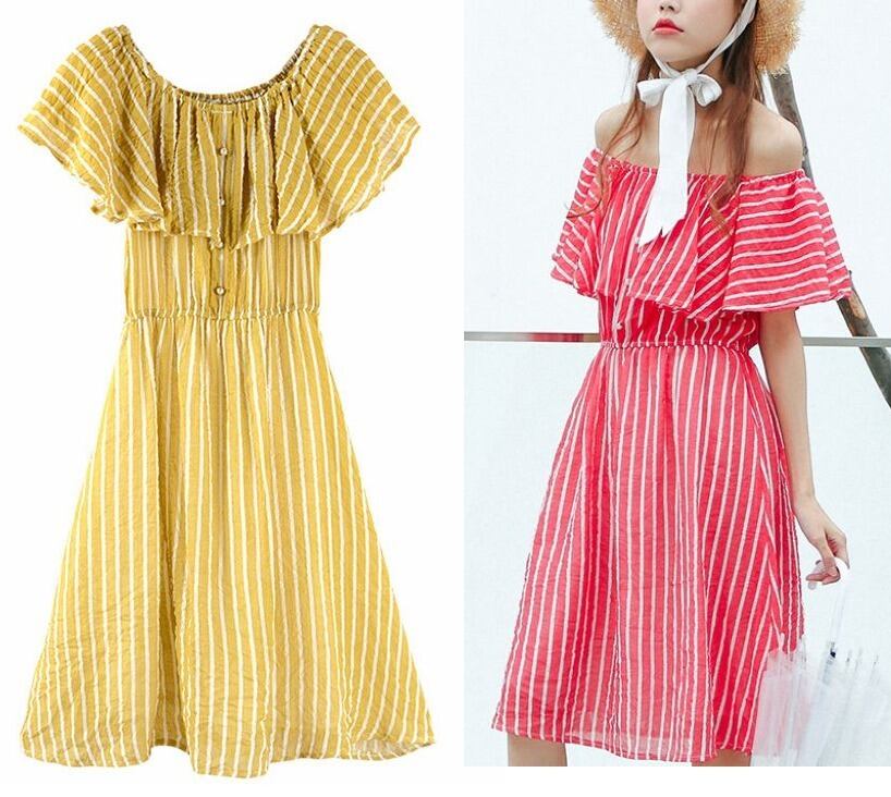 ストライプ★オフショルダー★フロントボタン★ワンピース♪