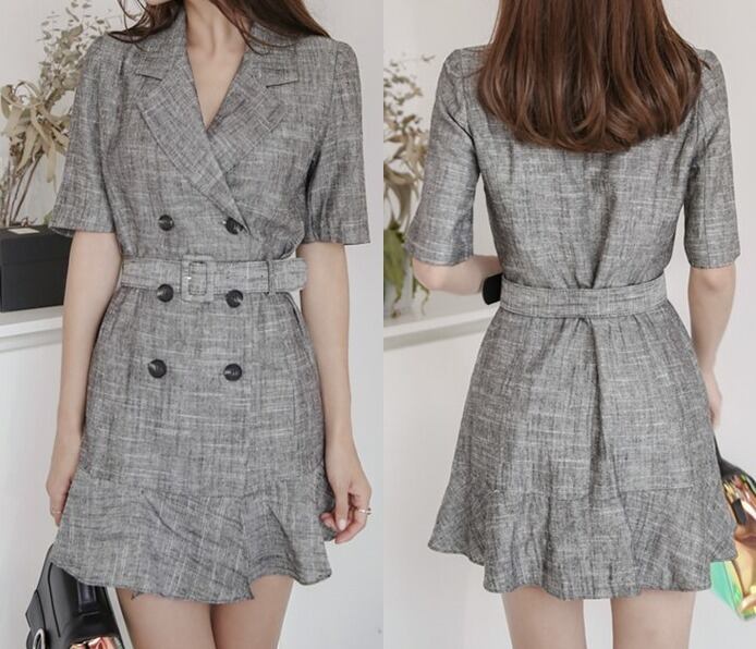 襟付★ウエストベルト★裾フリル★半袖★ミニ・ワンピース♪