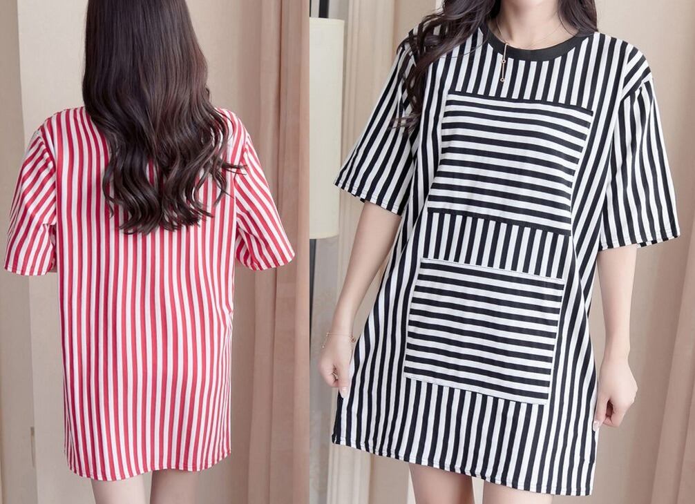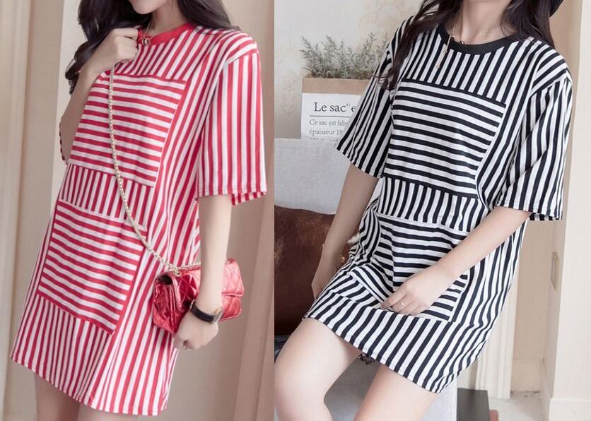 ストライプ柄★切替★半袖★ボックス型★ミニ・ワンピース♪
