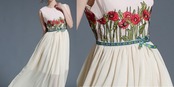 花柄刺繍★ウエスト・リボン★ノースリーブ★ロングワンピース♪
