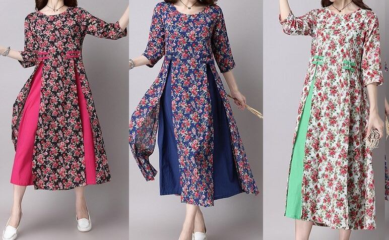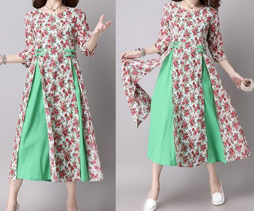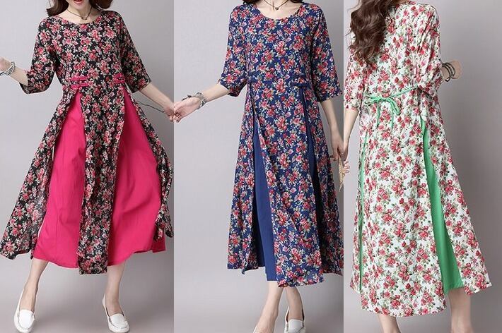 花柄★リボン★ラウンドネック★デザインスカート★ワンピース♪