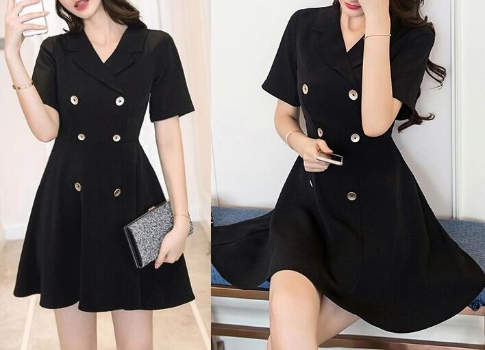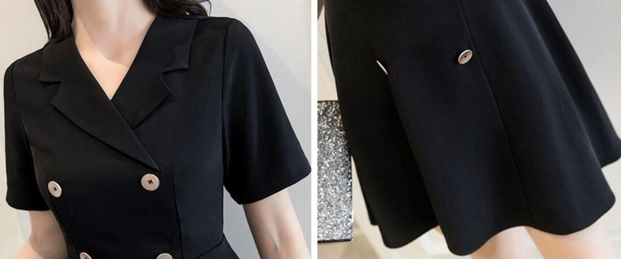 ダブル・ボタン★襟付き★Vネック★フレア★ミニ・ワンピース♪