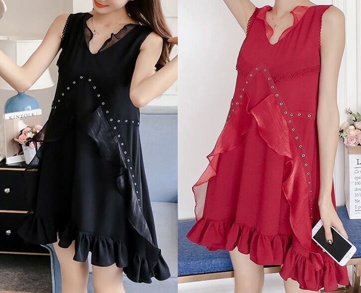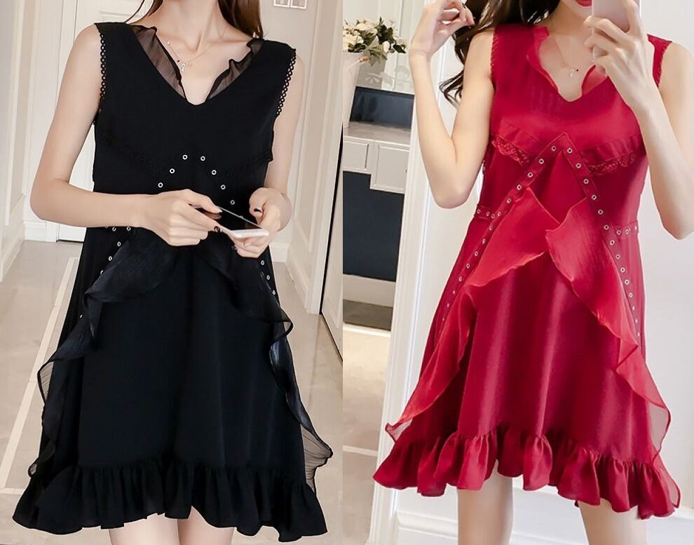 ホールデコ・ライン★ノースリーブ★フリル★ミニ・ワンピース♪