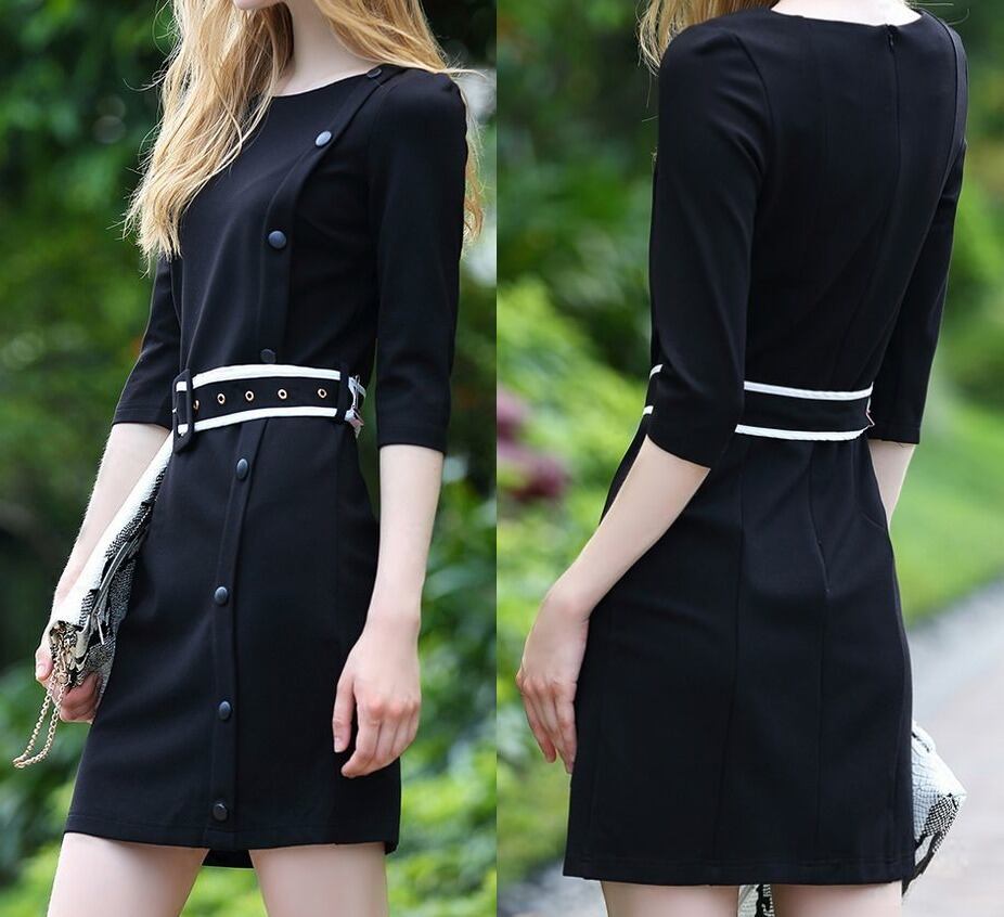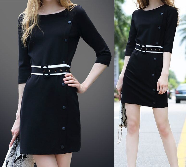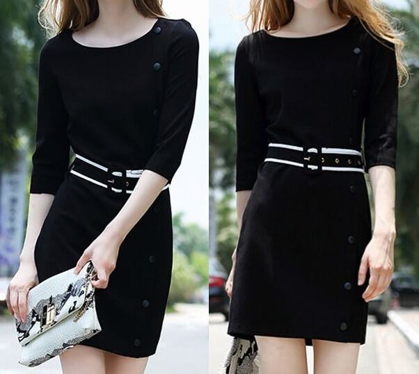 バイカラー・ウエストベルト★ボタンライン★ミニ・ワンピース♪