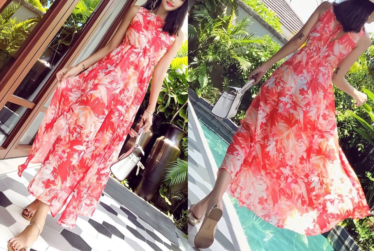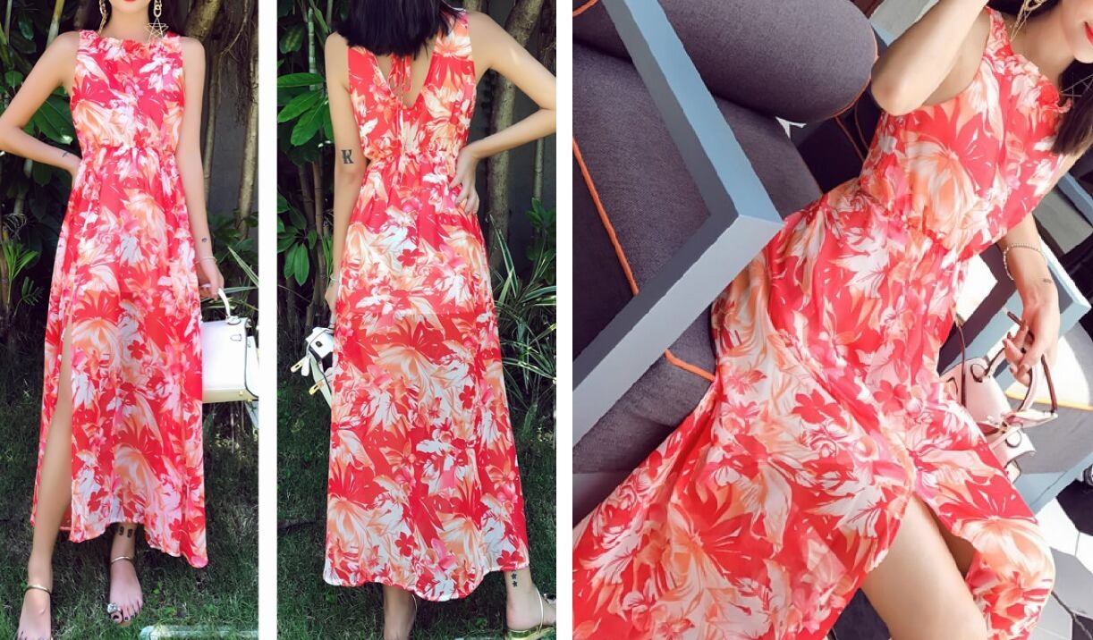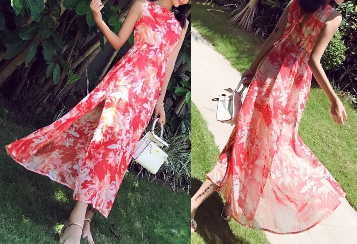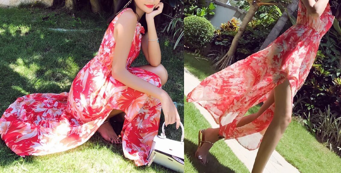 バックリボン★花柄★サイドスリット★ロング・ワンピース♪