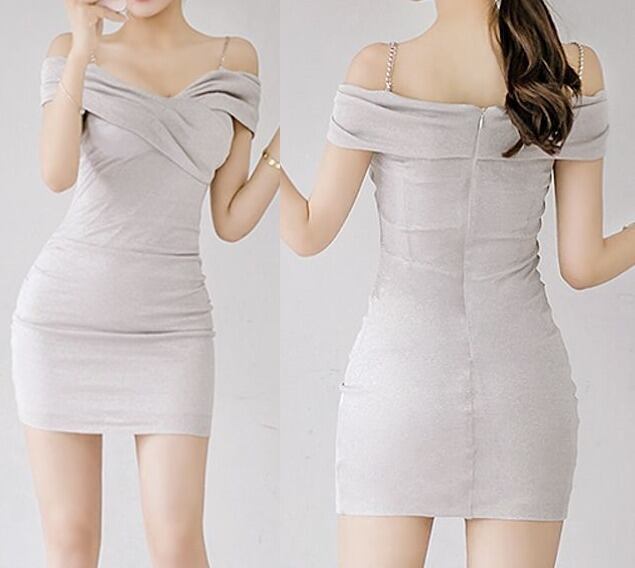 肩チェーンストラップ★カシュクール風★タイト★ワンピース♪