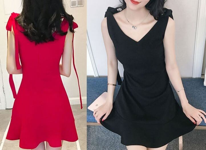 結びリボン・肩ストラップ★ノースリーブ★ミニ・ワンピース♪