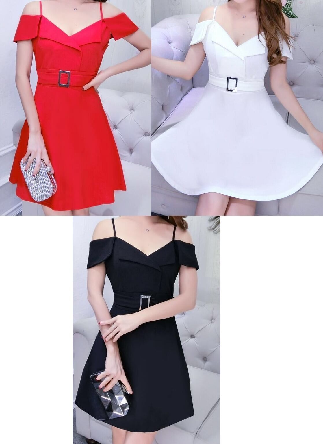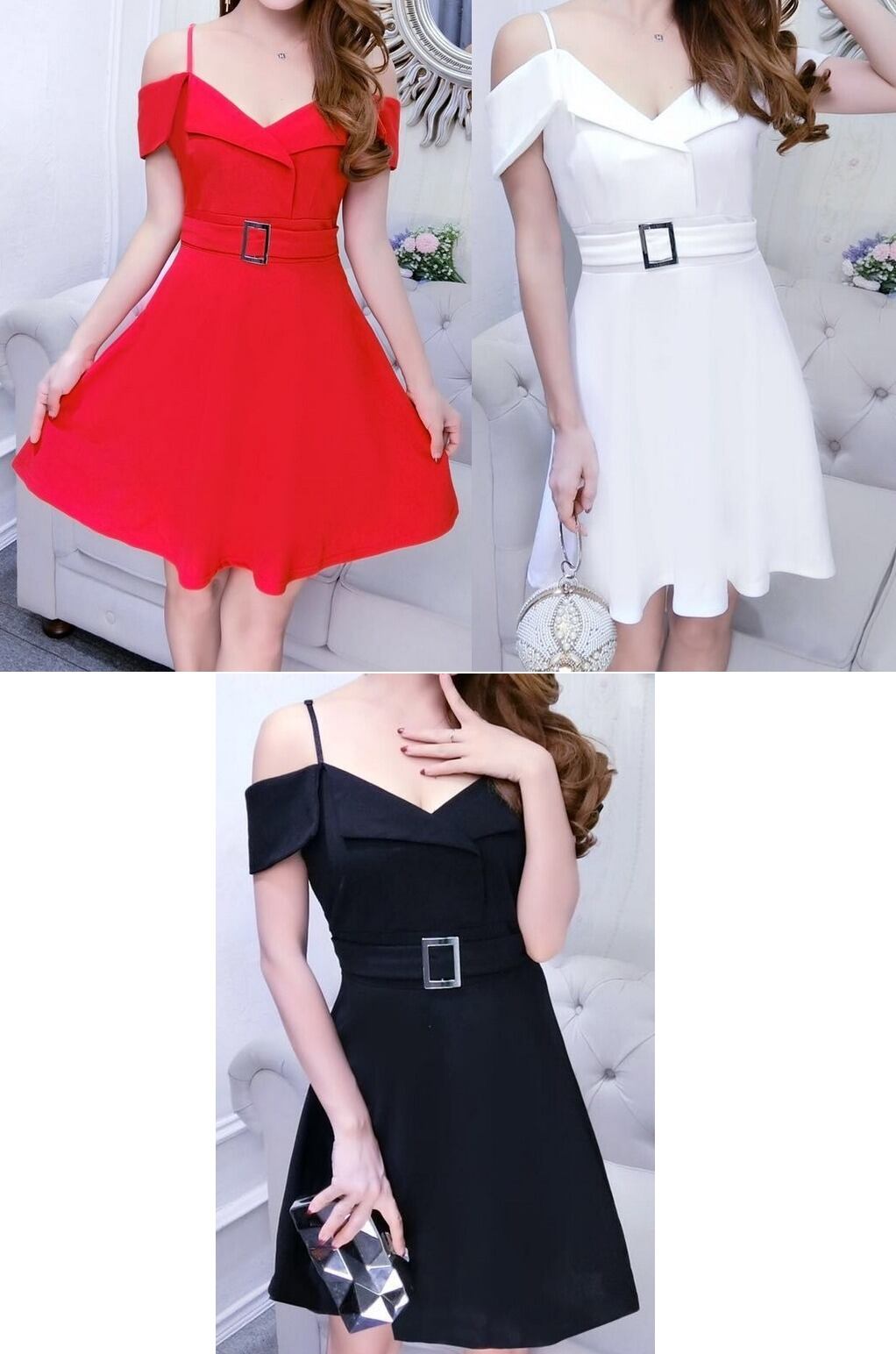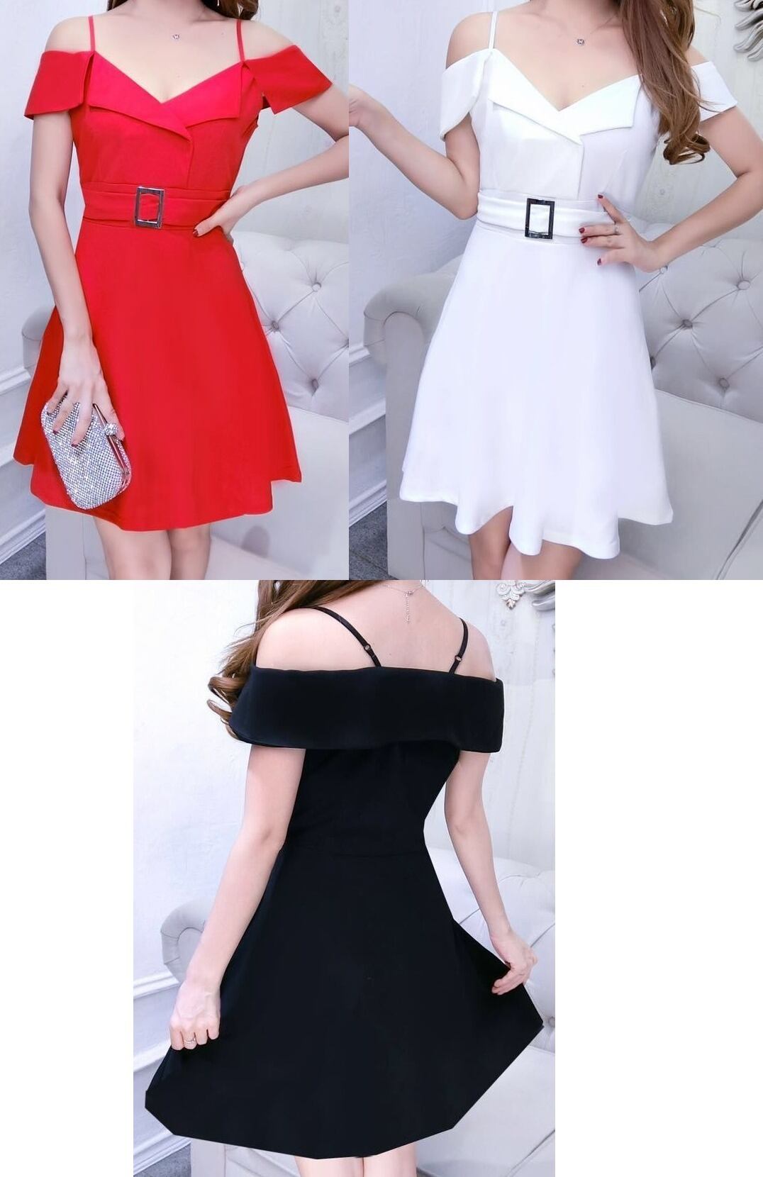 ウエストベルト★肩紐ストラップ★フレア★ミニ・ワンピース♪