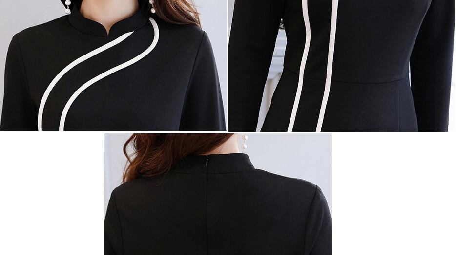 ダブルライン・デザイン★スタンドカラー★長袖★ワンピース♪