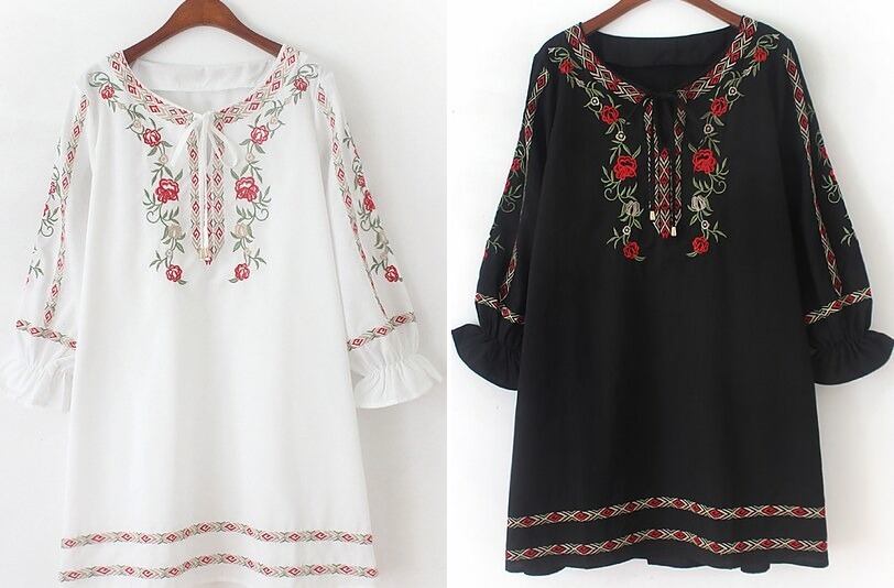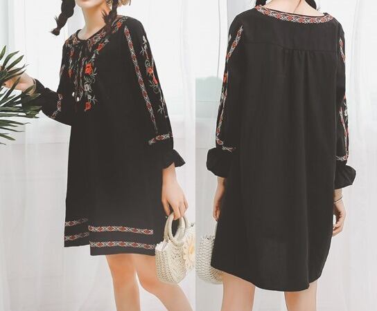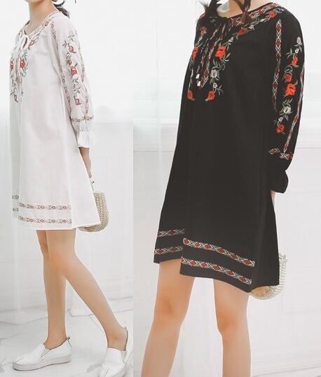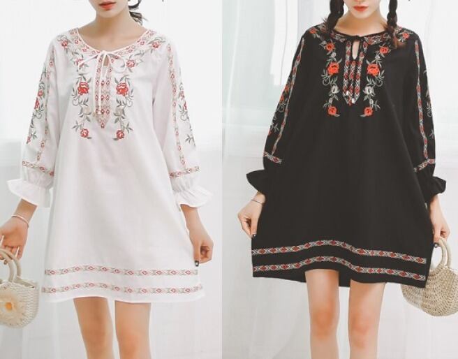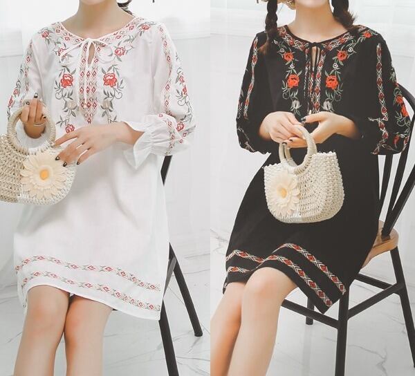 花柄刺繍★結びリボン★ラウンドネック★ミニ・ワンピース♪