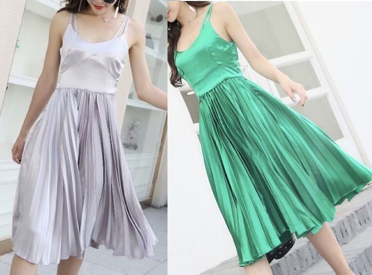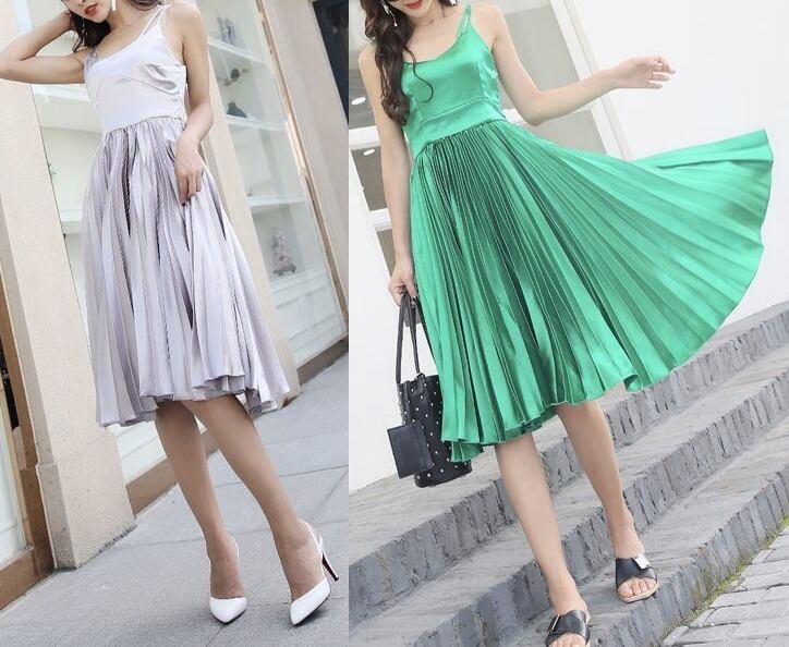 肩紐ダブルストラップ★プリーツスカート★切替★ワンピース♪
