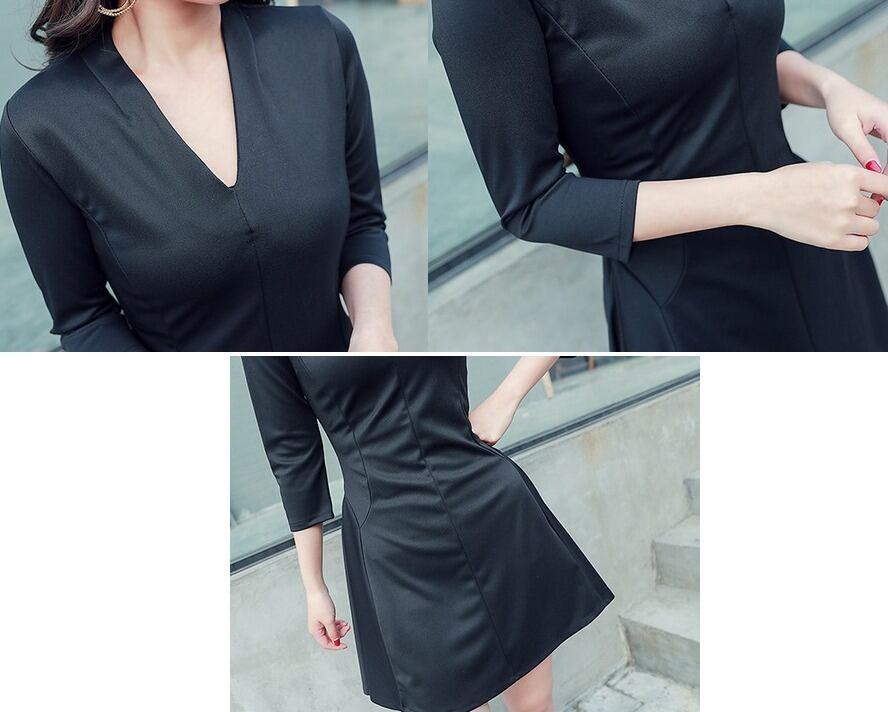 シンプル★Vネック★切替デザイン★七分袖★ミニ・ワンピース♪