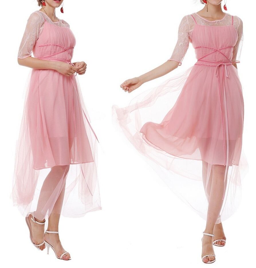 クロス・結びリボン★シースルー★七分袖★ロング・ワンピース♪