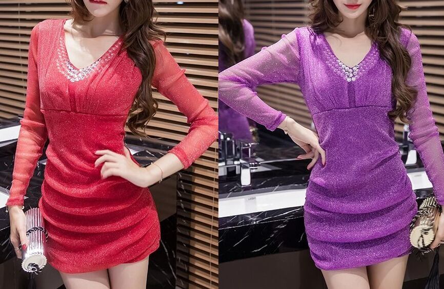 ビジューデコ★Vネック★ドレープ★長袖★ミニ・ワンピース♪