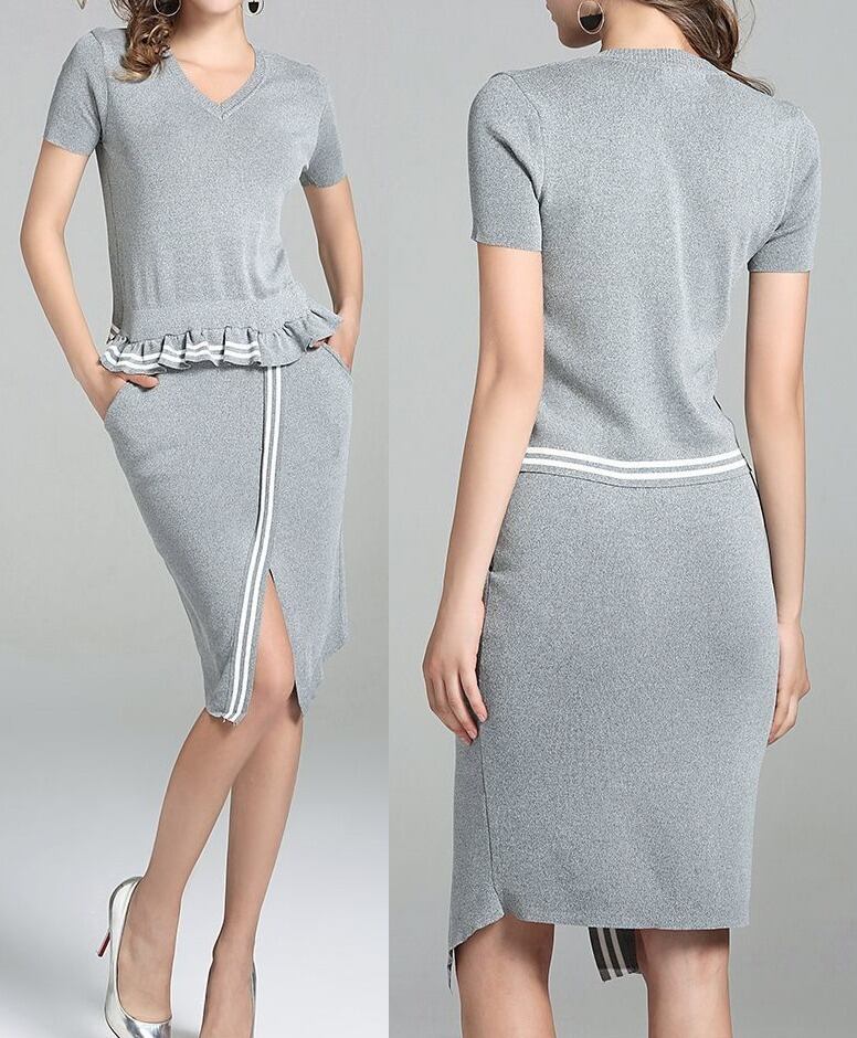 フリル・デザイン★Vネック★ライン★スリット★ワンピース♪
