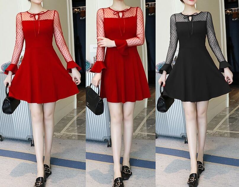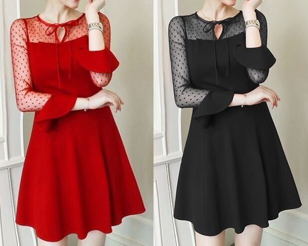 ドットレース★結びリボン★シースルー切替★ミニ・ワンピース♪