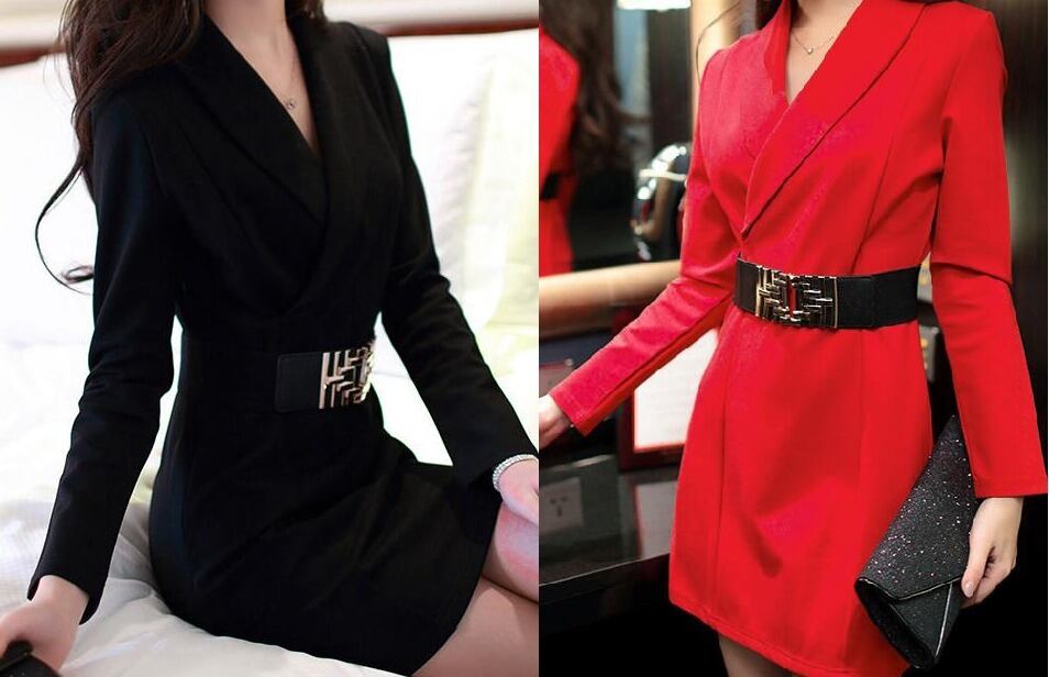 ウエスト・デザインベルト★襟付きVネック★長袖★ワンピース♪