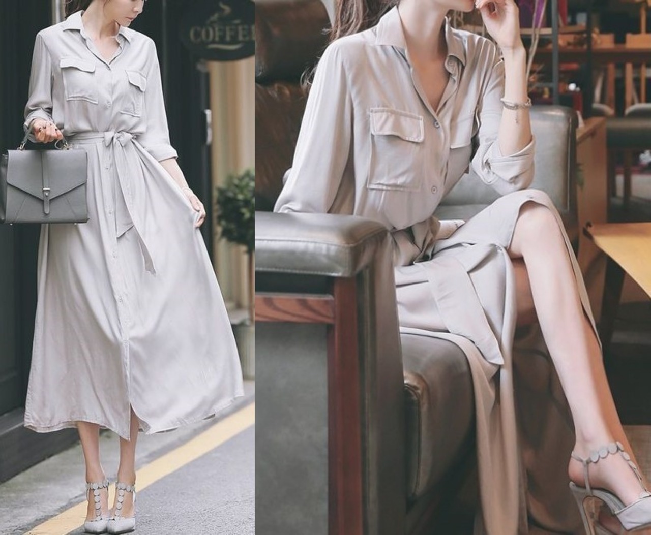 ウエストリボン★襟付★ポケット★フロントボタン★ワンピース♪