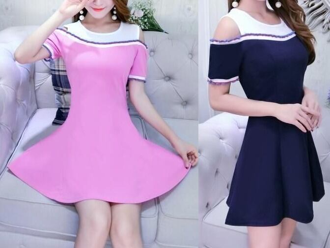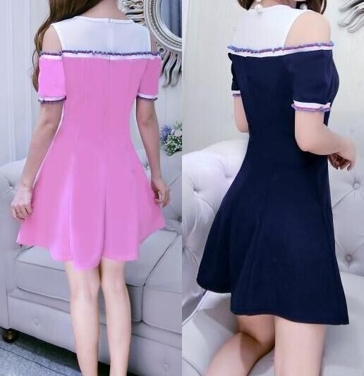 切替デザイン★ラウンドネック★半袖★フレア★ミニワンピース♪
