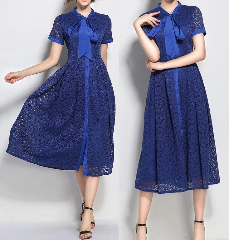 エレガントレース★結びリボン★フロントボタン★ワンピース♪