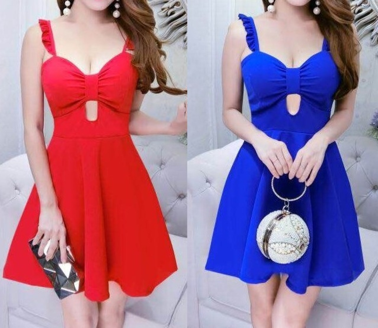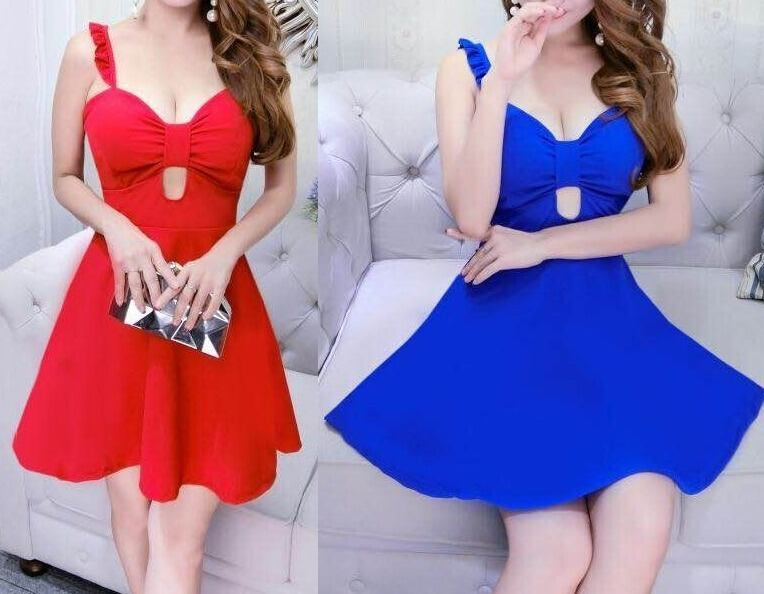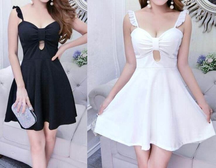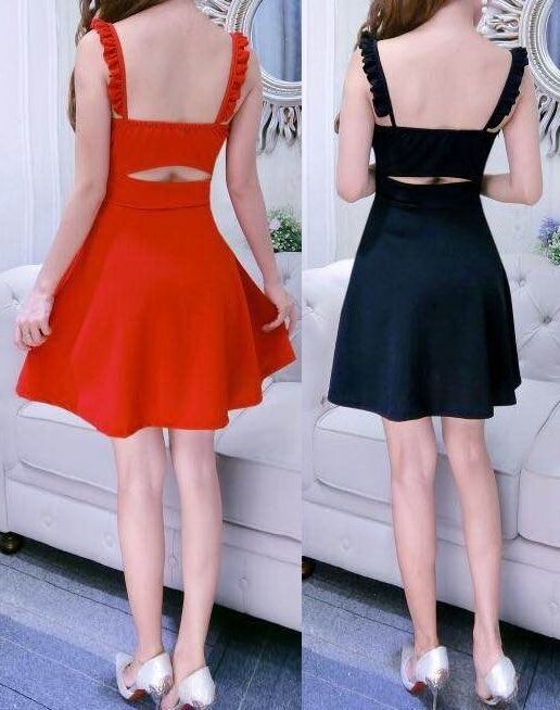 肩・フリルストラップ★リボン風★フレア★ミニ・ワンピース♪