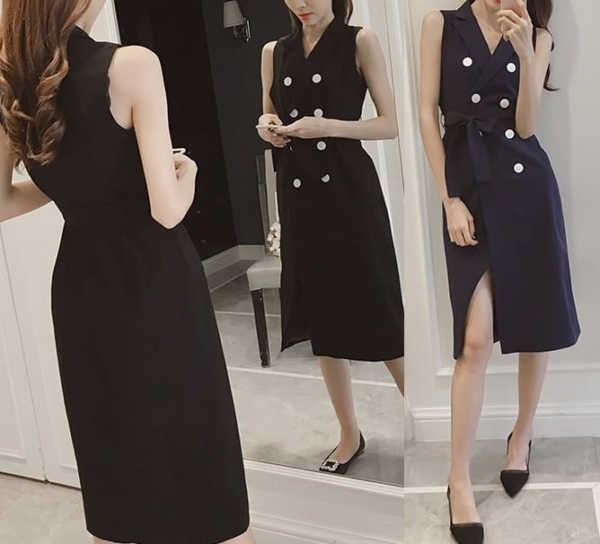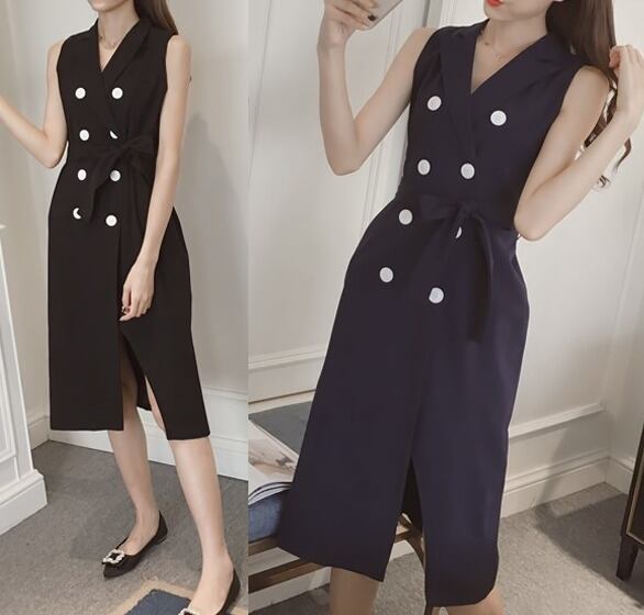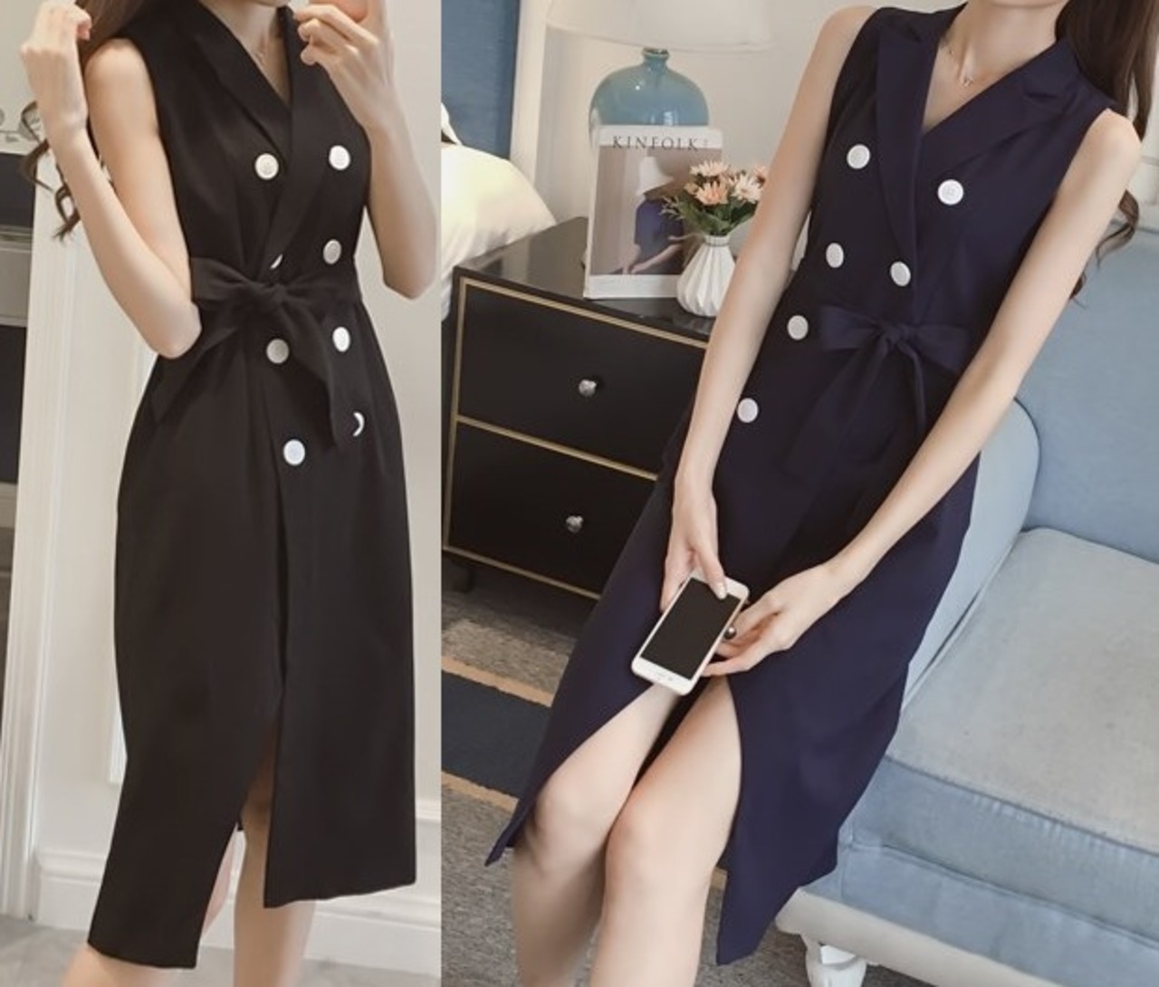 大きめボタン★ウエスト結びリボン★ノースリーブ★ワンピース♪