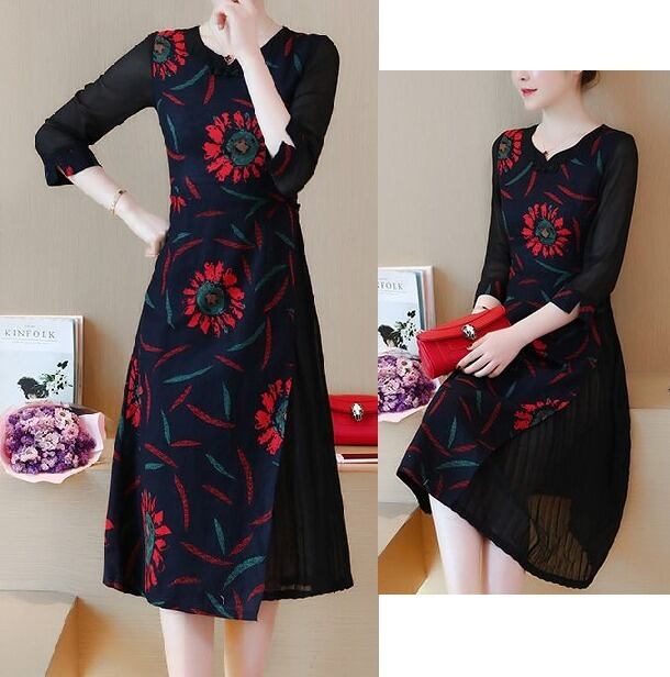 大きめ花柄★アシンメトリーデザイン★プリーツ★ワンピース♪