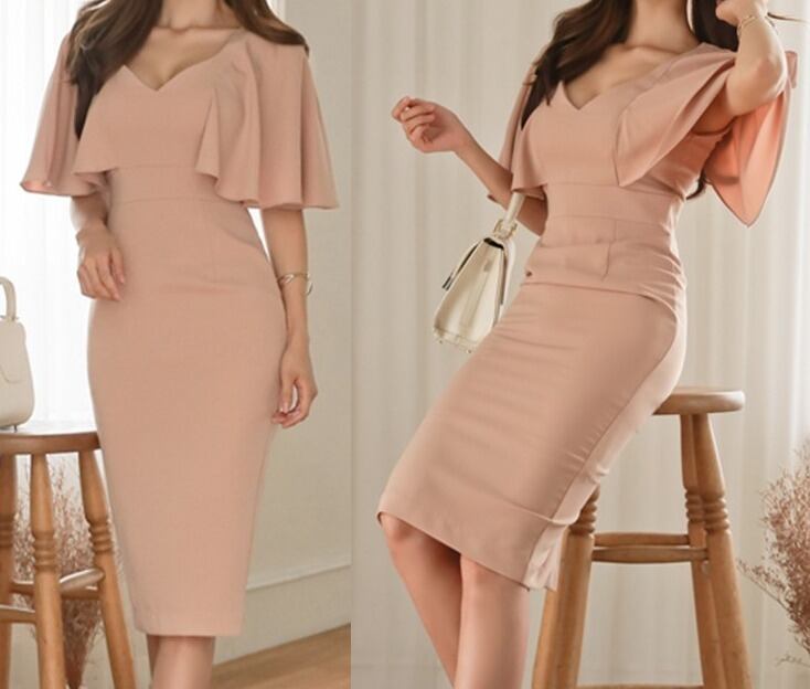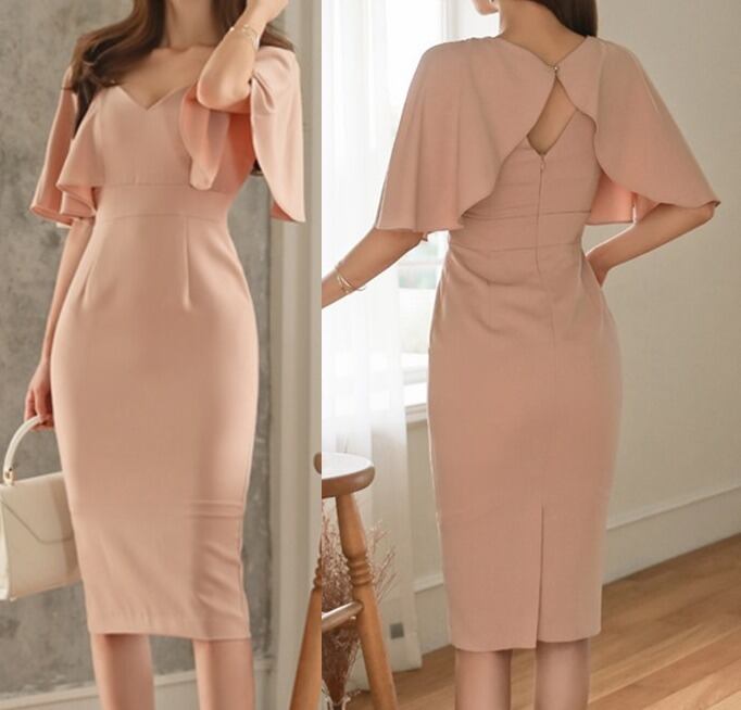 ボリューム袖★ケープ風★バックスリット★タイト・ワンピース♪