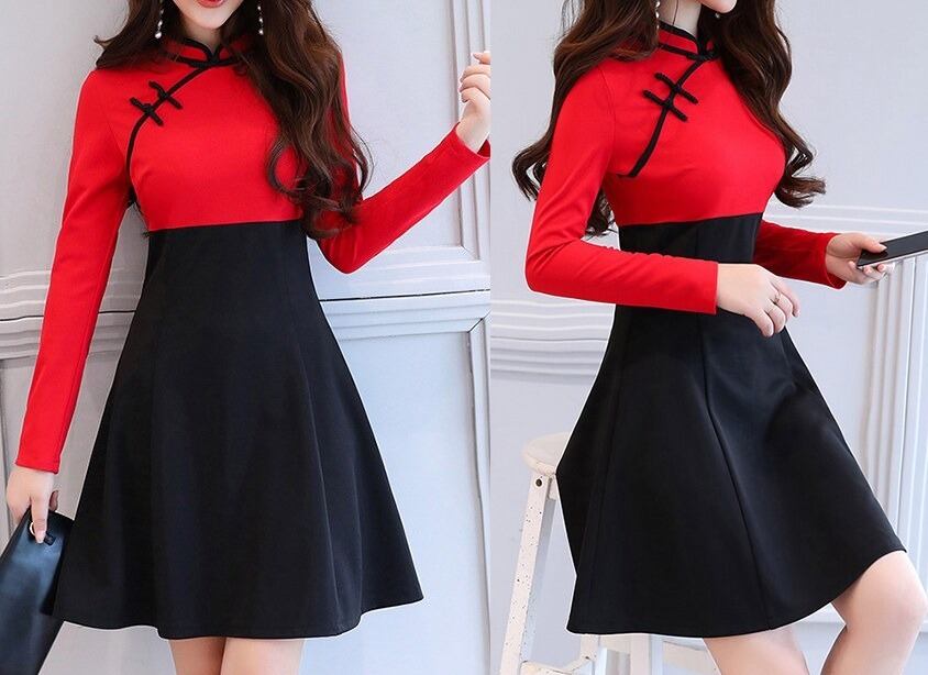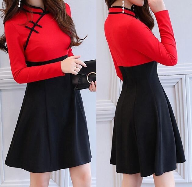 バイカラー★スタンドカラー★チャームデコ★フレアワンピース♪