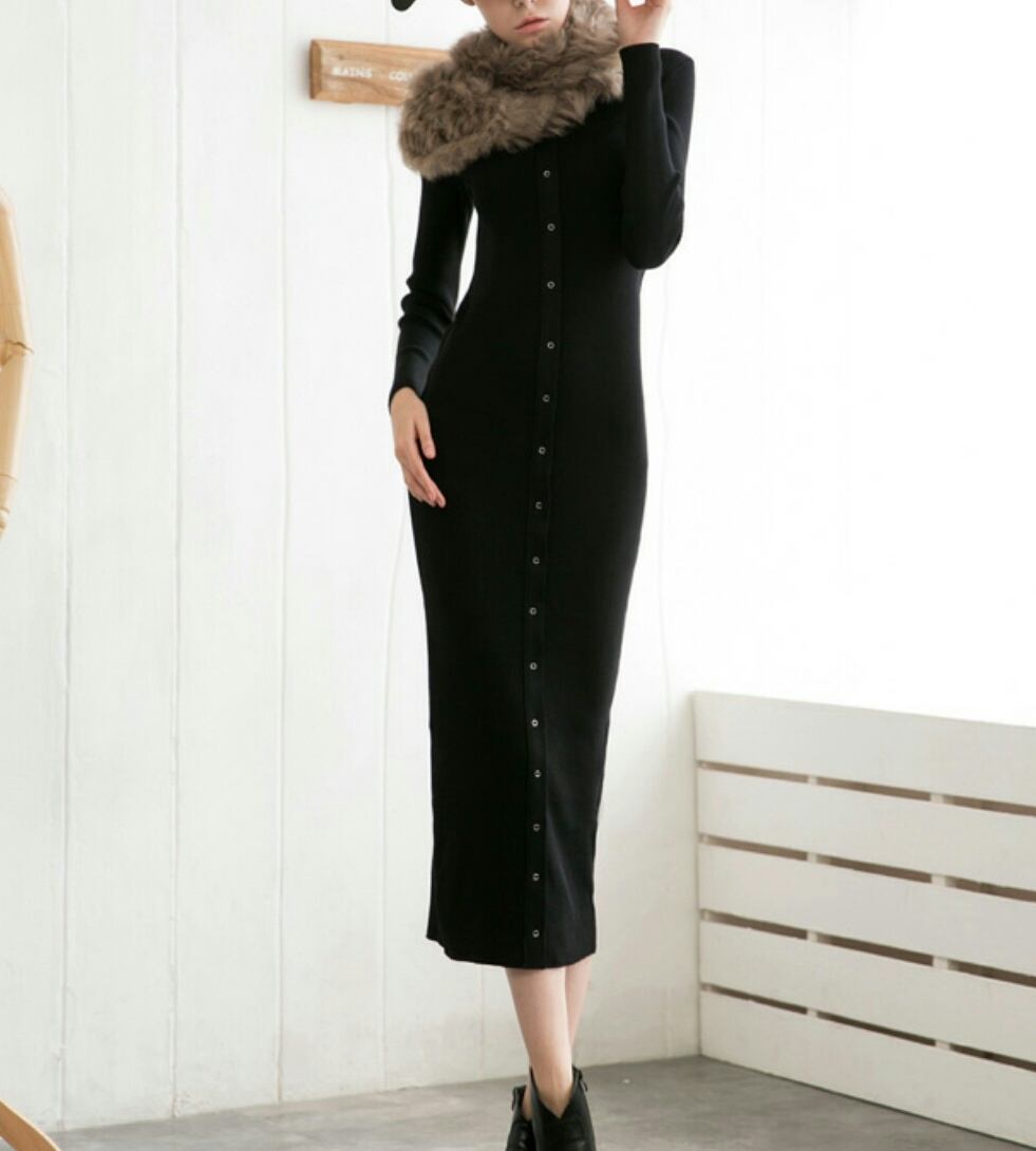 新作 オシャレ♪2カラー美ライン ニットワンピース