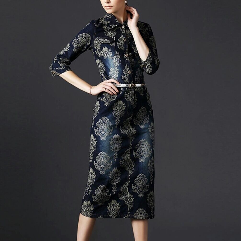 新作 オシャレ♪2タイプ/レトロプリントデニムワンピース