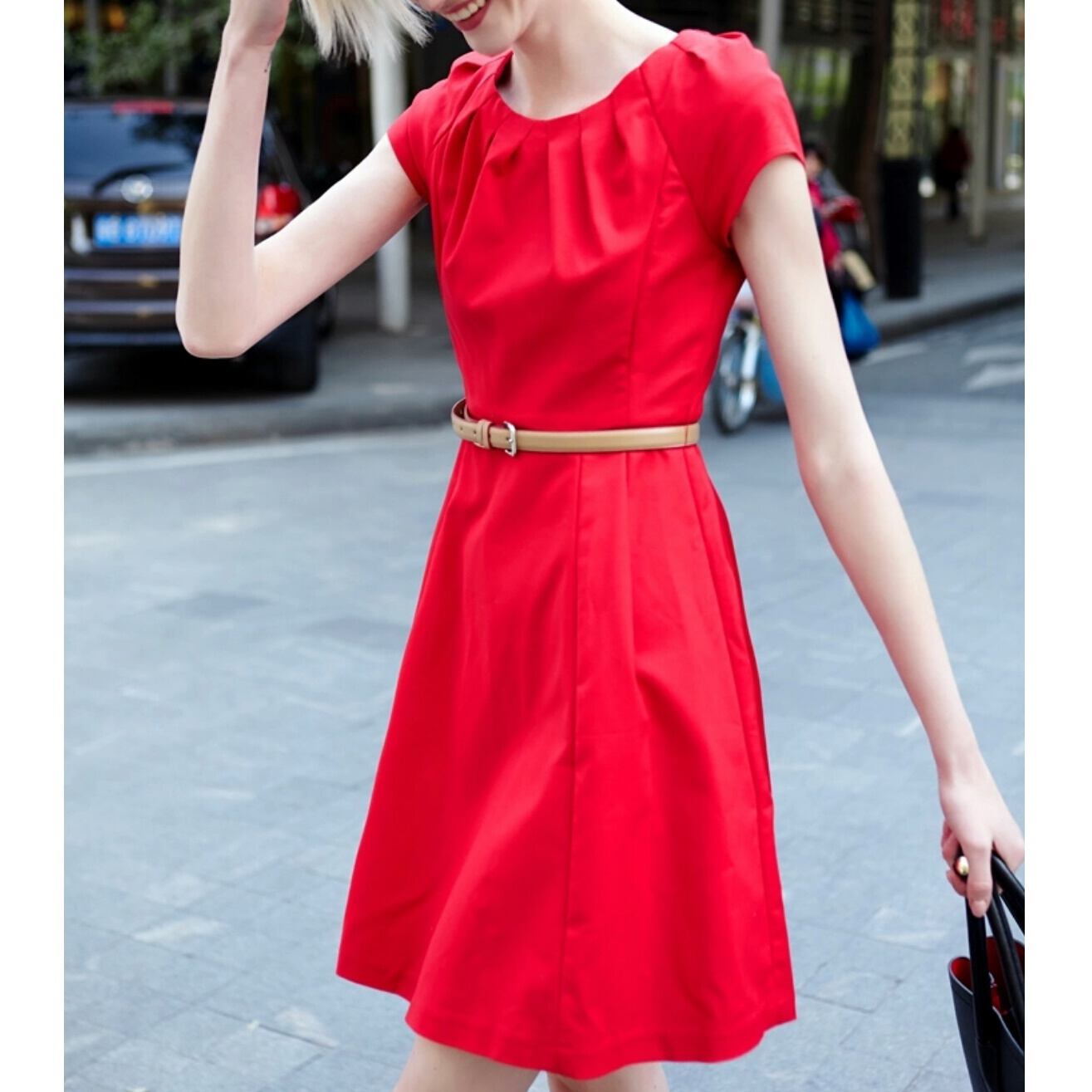 新作オシャレ♪3色/ポイント立体シンプルフレアワンピース