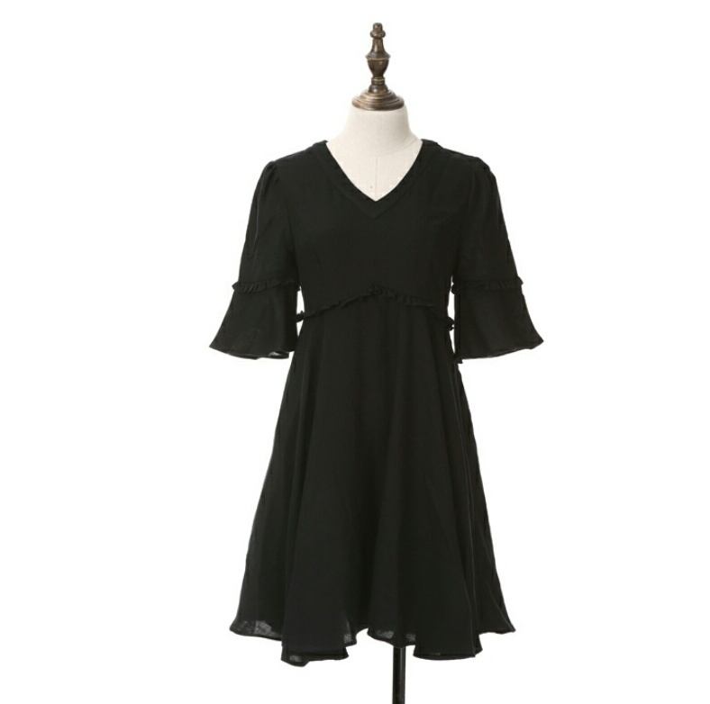 新作 オシャレ♪ポイントフリルVネックワンピース