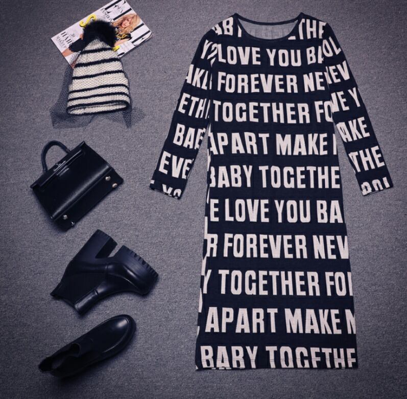 新作 オシャレ♪2色/ロゴプリントコットンワンピース