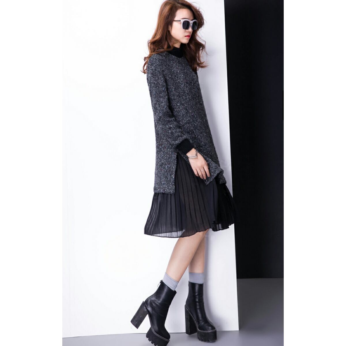 新作 オシャレ♪プリーツ切替フェイクレヤードワンピース