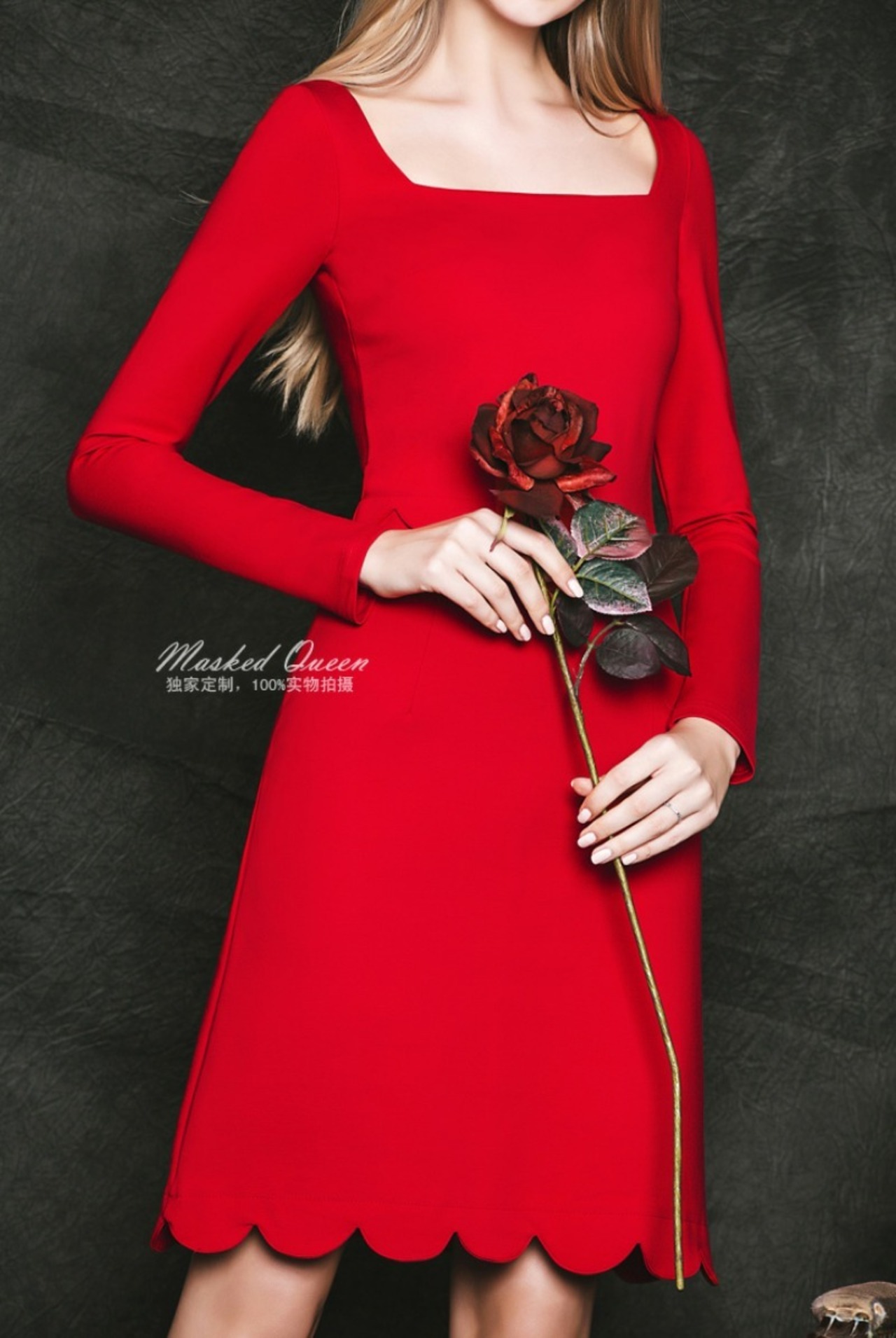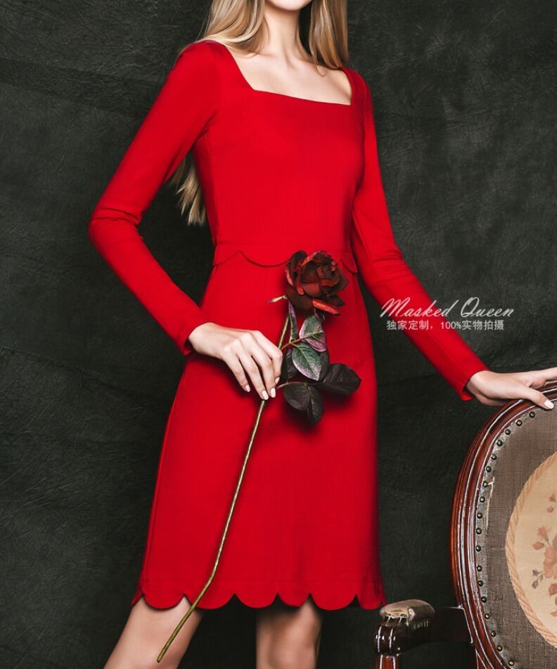 新作 オシャレ♪2色/スクエアカラースカラップドレス