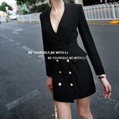 新作 オシャレ♪ダブルボタンVネックワンピース