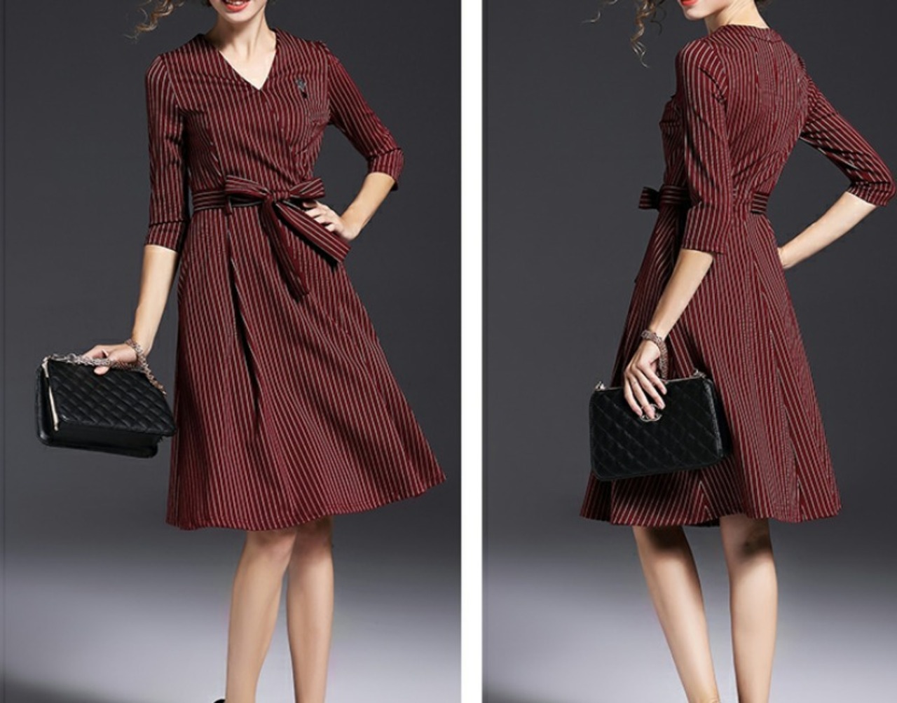 新作 オシャレ♪2色/ストライプフレアワンピース
