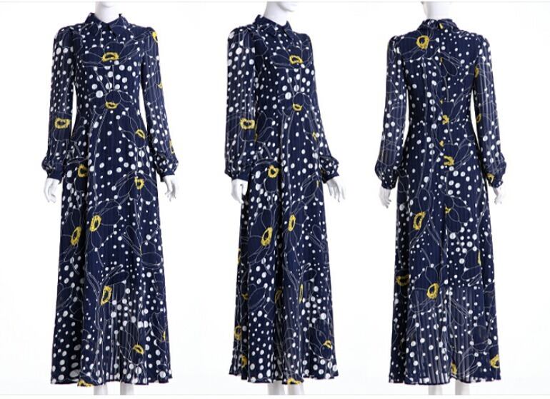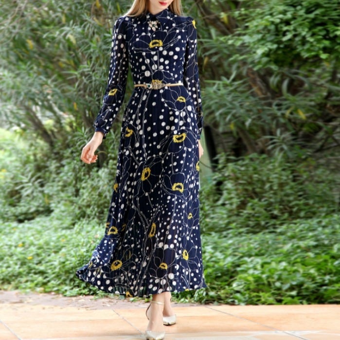 新作 オシャレ♪ドット&フラワーモチーフワンピース