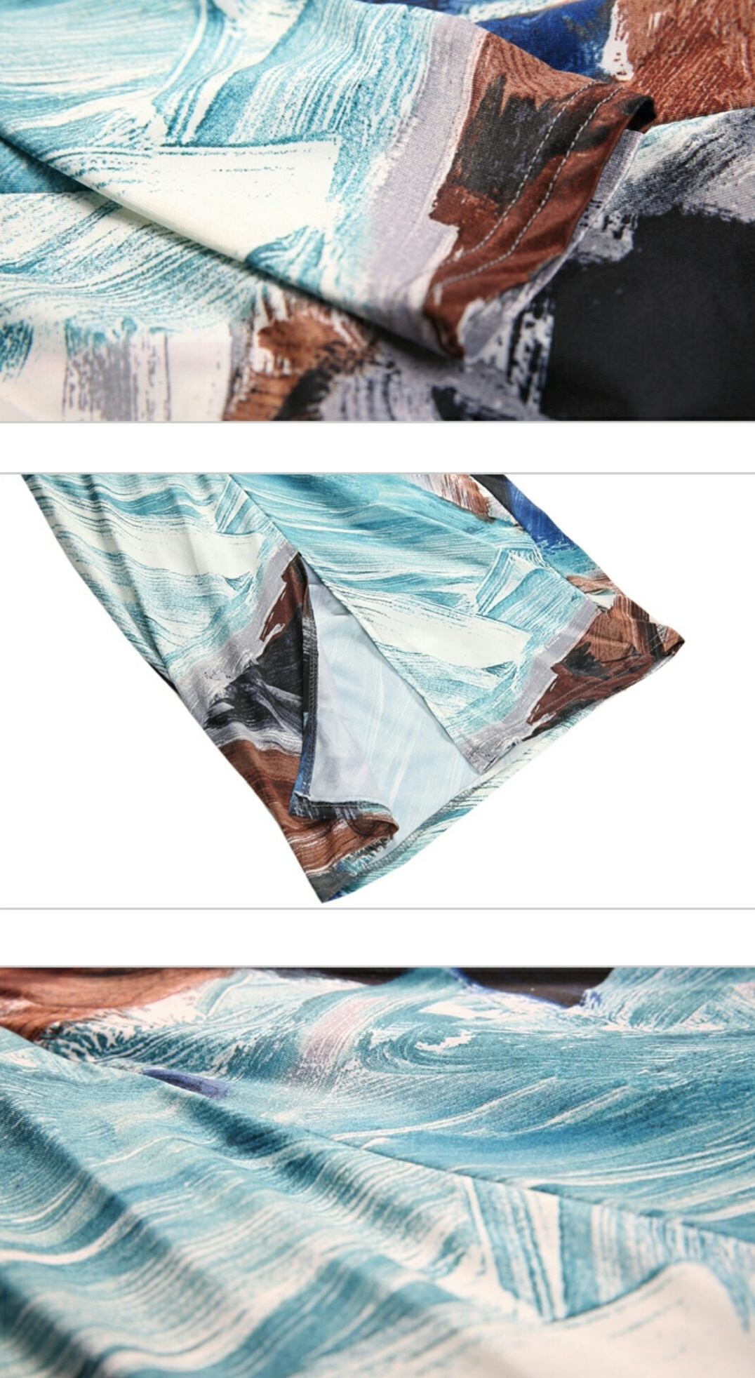 新作 オシャレ♪抽象柄ウエストカットワンピース
