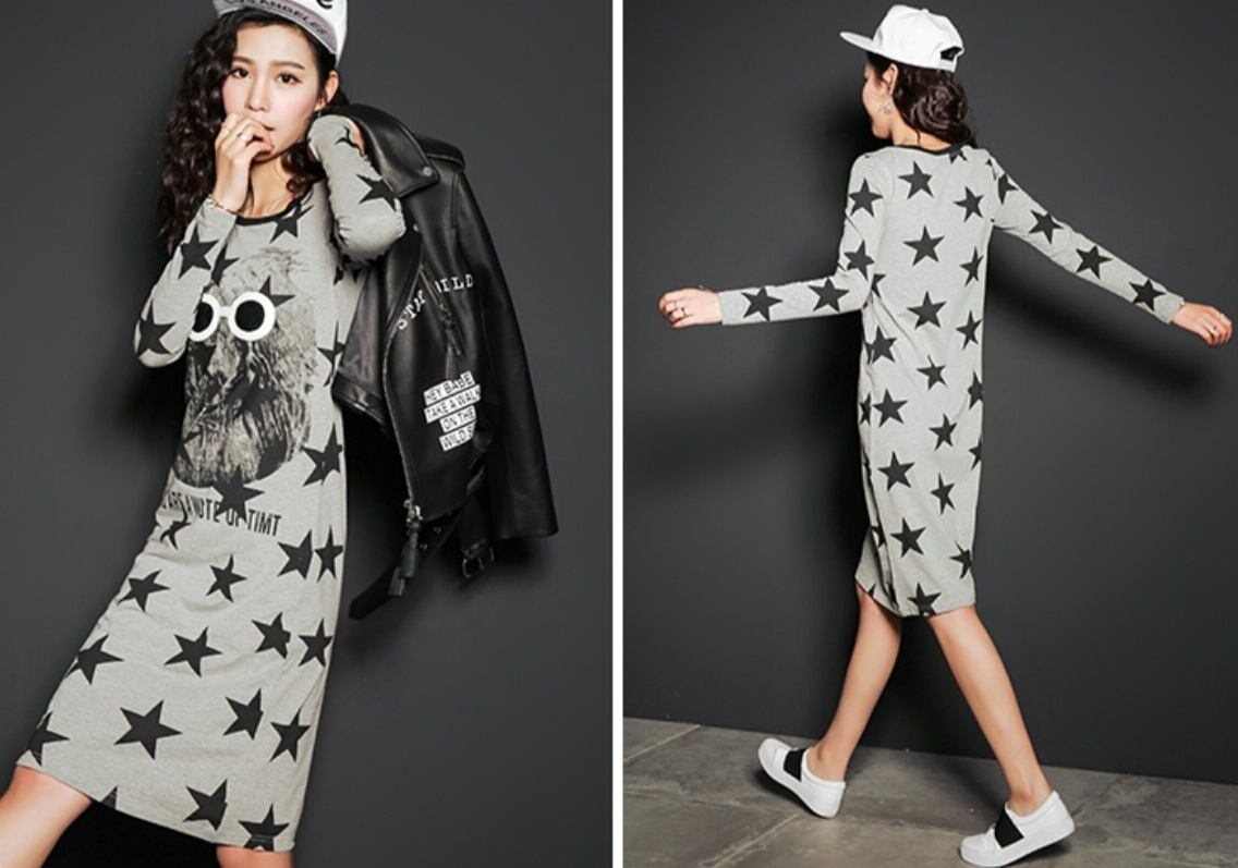 新作 オシャレ♪2色/星プリントコットンワンピース