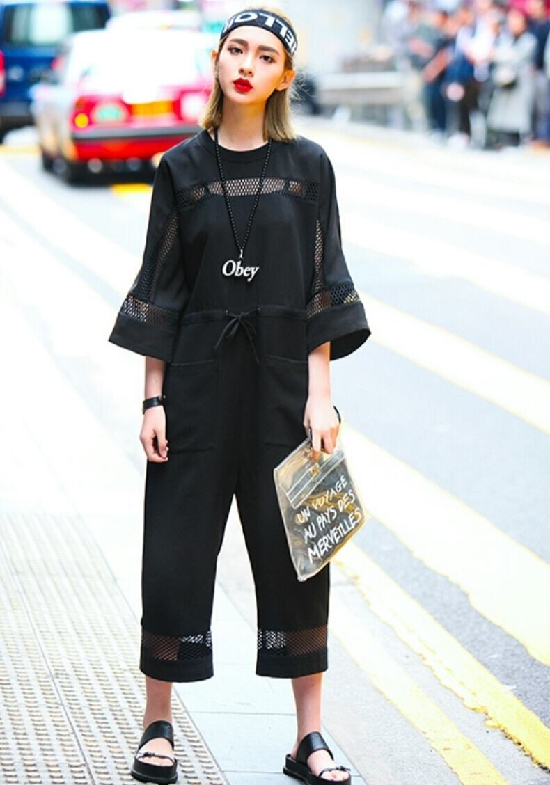 新作 オシャレ♪2色/ポイントメッシュオールインワン
