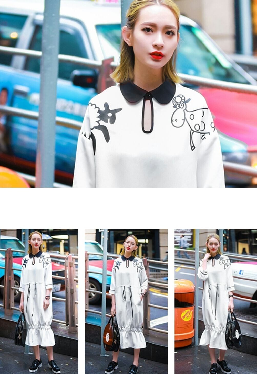 新作 オシャレ♪ユニークお絵描プリントワンピース