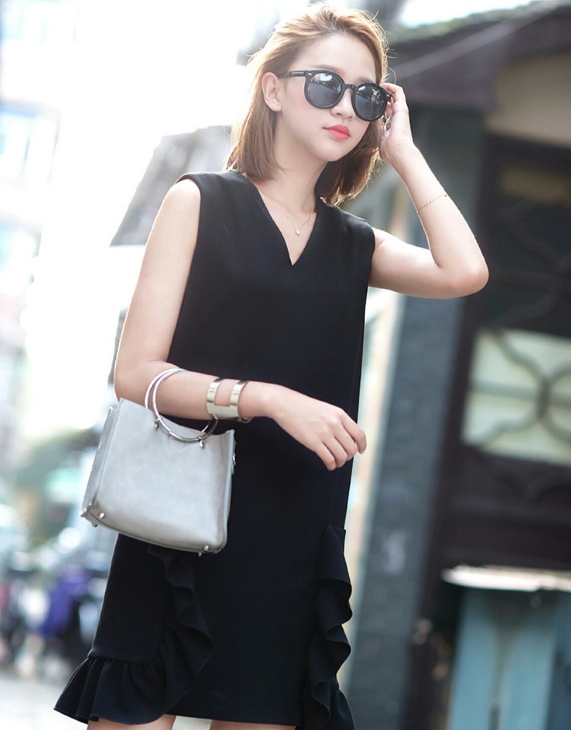 新作 オシャレ♪ポイントフリルポケットワンピース